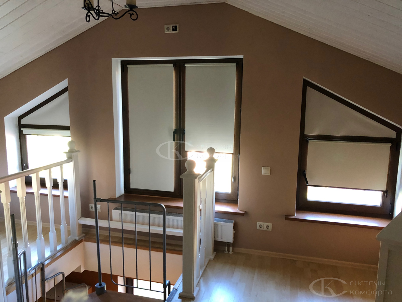 Для больших или высоко расположенных окон идеально подходят автоматические системы с электроприводом. Управление с пульта или со смартфона добавляет комфорта и относится к элементам современного «умного дома».