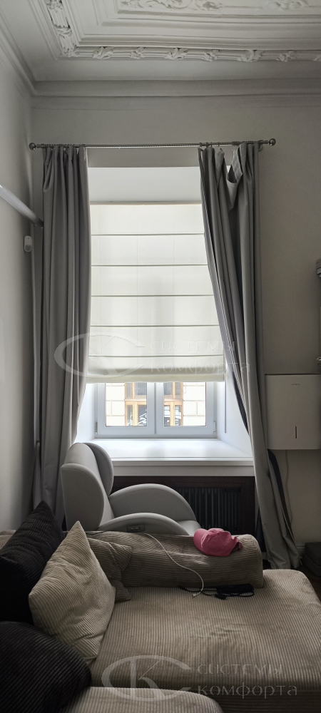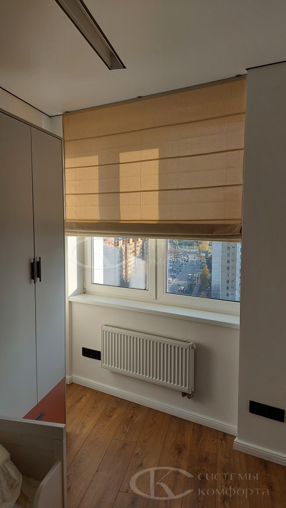 Отдельного упоминания заслуживают римские шторы. Они представляют собой золотую середину между классической текстильной занавесью и современной солнцезащитной системой. При подъеме такое полотно складывается в аккуратные, равномерные горизонтальные складки-волны. Это решение дарит интерьеру ту самую теплоту, уют и «мягкость», которые ассоциируют с традиционными шторами, но при этом сохраняет лаконичность и функциональность жалюзи. Римские шторы из натурального льна, хлопка или смесовых тканей – это беспроигрышный выбор для спальни в стиле Прованс, скандинавской гостиной или элегантного кабинета, они добавляют пространству фактуры и шарма.